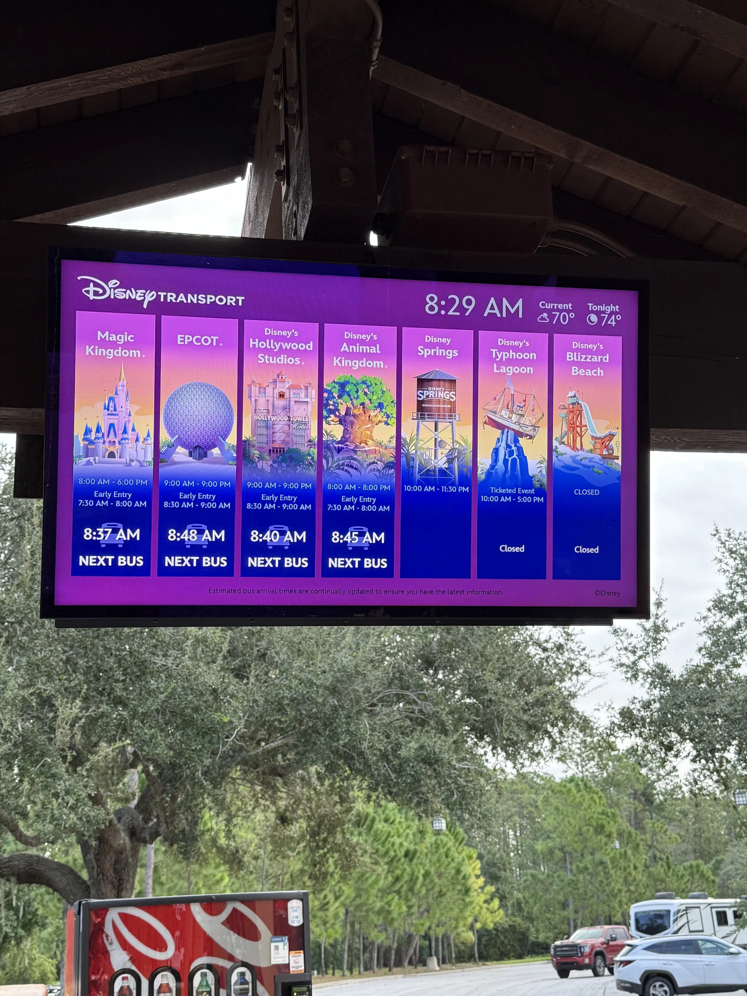 Another little-known fact is that you can actually check when the next Disney bus will arrive to your resort bus stop on the My Disney Experience app! It was a NICE upgrade when Disney added screens to each bus stop that shows bus arrival times, but it can be useful to know ahead of time. A few examples of when this is useful: